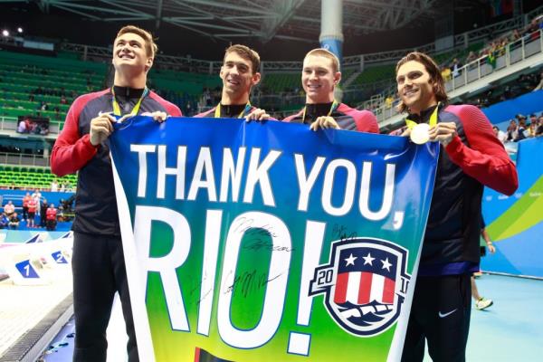 ورزشکاران آمریکایی از آب های ریو ۱۷ طلا، ۱۰ نقره و ۱۰ برنز گرفتند تا با اختلاف فاحشی نسبت به سایر تیمها در جایگاه نخست بایستند. از ۱۷ طلای ایالات متحده، ۱۶ طلا به رشته شنا و یک طلای دیگر به واترپلوی زنان اختصاص داشت.